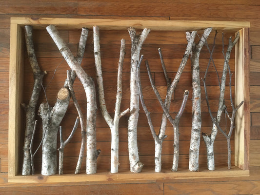 Rustic Foraged Birch Branches 3D Art with Reclaimed Pine Frame - "The Forest" - Large Format 15x26